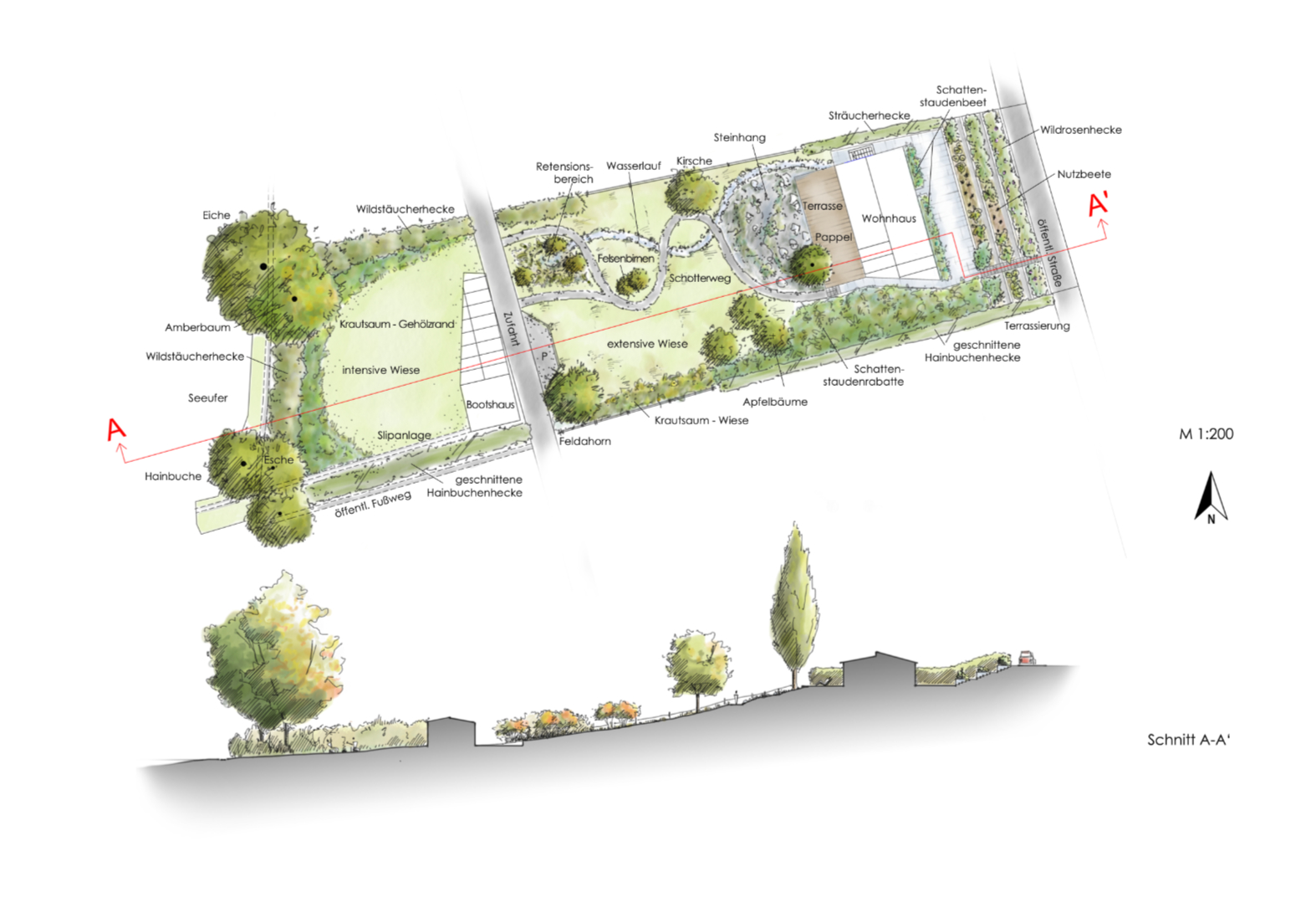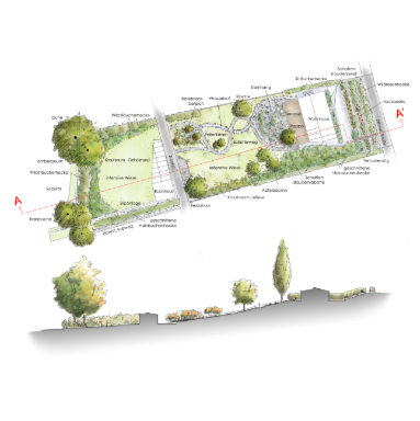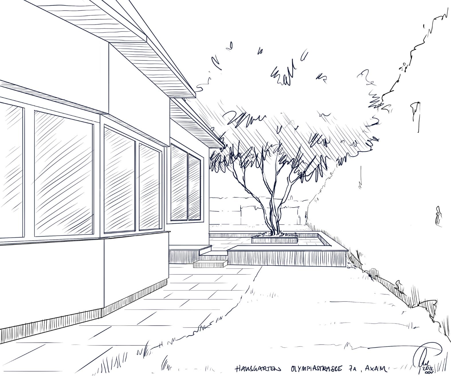 Ich biete die grafische Umsetzung von Garten- und Außenanlagenplanungen an. Die Projekte werden von mir Freihand, vorzugsweise digital am Tablet gezeichnet. Das Tablet nutze ich als geniales Werkzeug, mit welchem es möglich ist die Vorzüge digitaler und analoger Arbeitsweisen zu vereinen. Dadurch kann ich auch Änderungen deutlich zeitsparender vornehmen. Eine solche Freihandzeichnung lässt ein greifbares Bild der Planung entstehen, dass mit unverfänglichem, dennoch aussagekräftigen Charakter als wertvolles Kommunikationsmedium zwischen Auftraggeber und Planer genutzt werden kann. Ich sehe großes Potential in dieser Darstellungsart, da sie die Vorstellungskraft des Betrachters auf kreative Art einlädt.